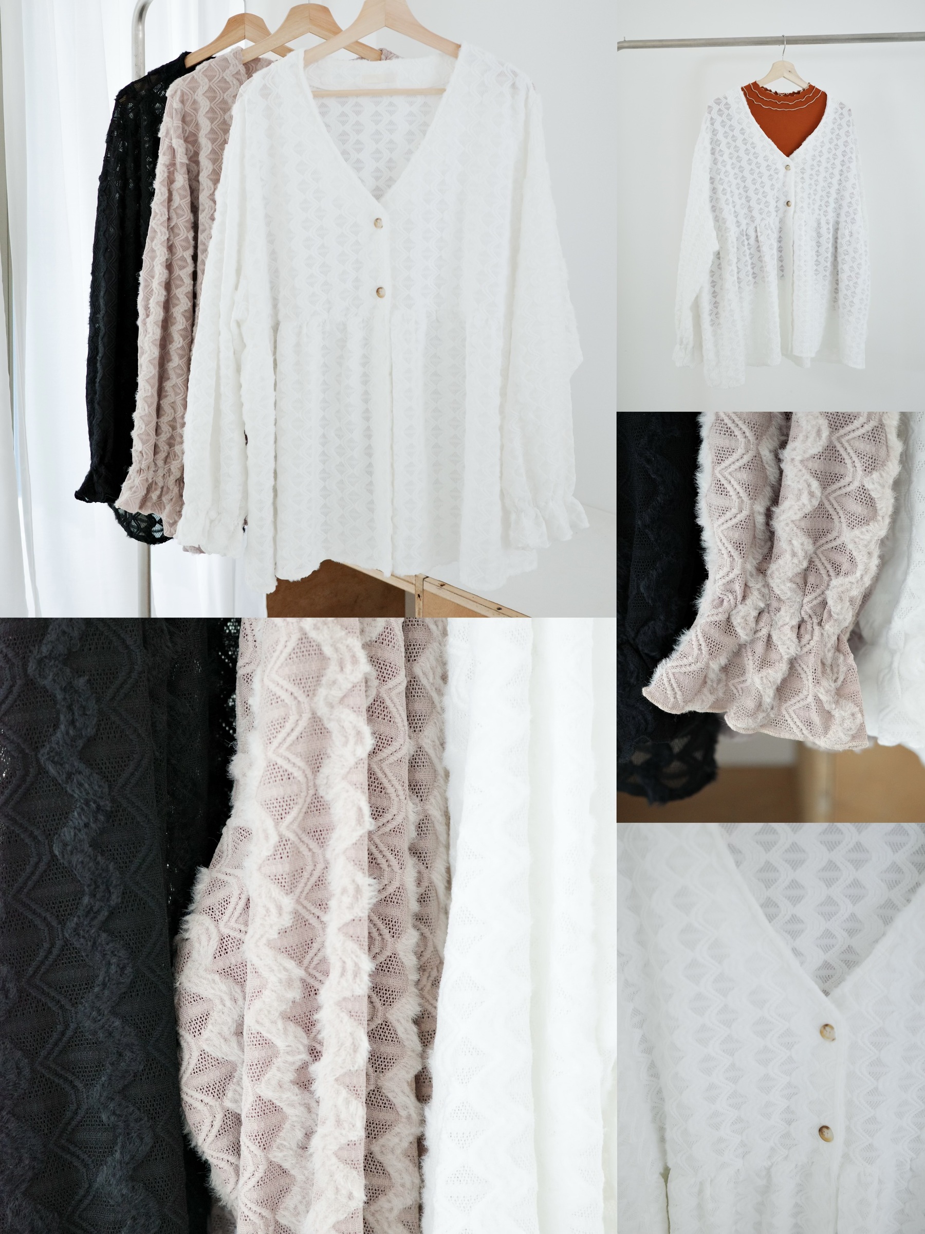 軟糯波浪羽毛開襟衫(3colors)